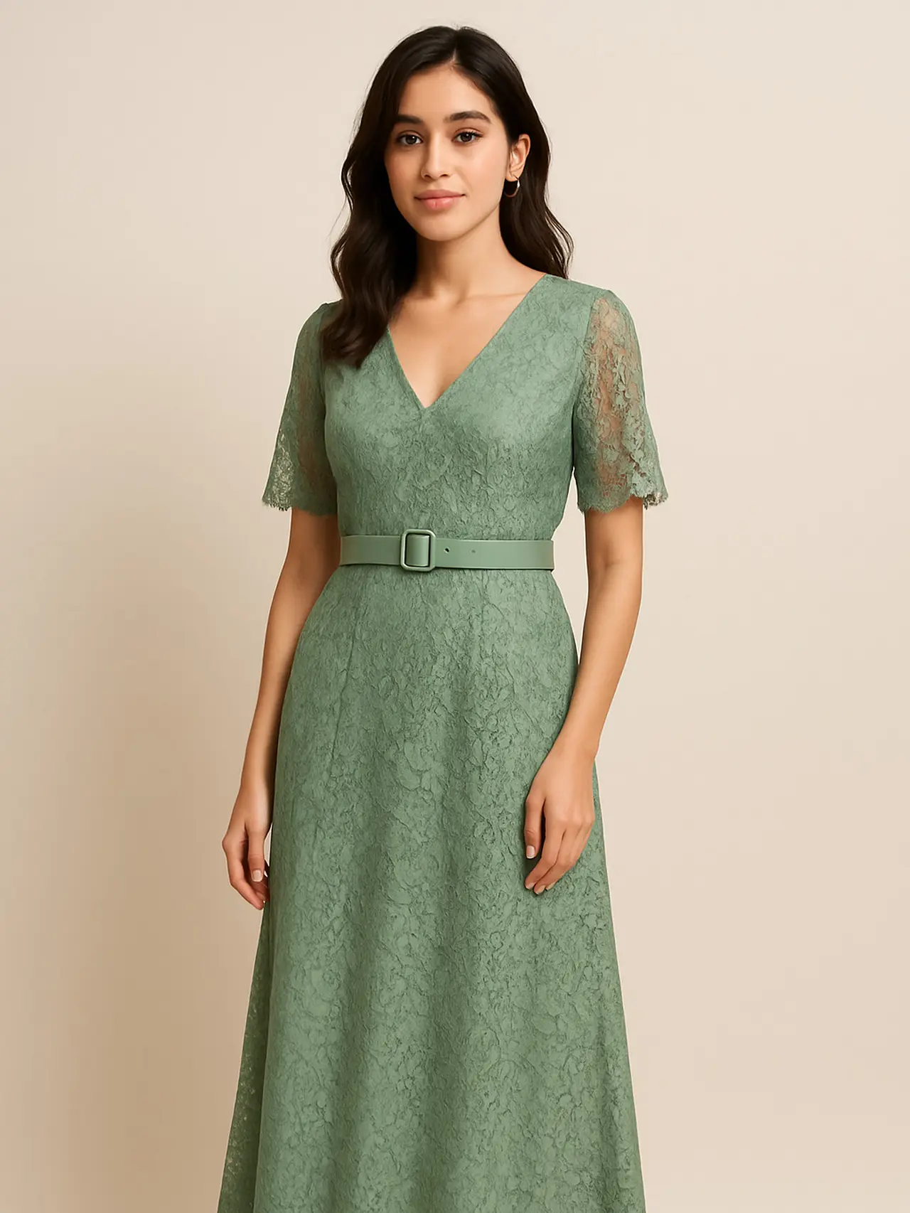 Aksen belt di pinggang membantu menonjolkan siluet tubuh dan memberikan struktur pada dress. Model ini cocok bagi Anda yang ingin tampil ramping dan proporsional. Warna-warna seperti sage green atau maroon memberikan kesan elegan dan mudah dipadukan dengan aksesori lainnya.