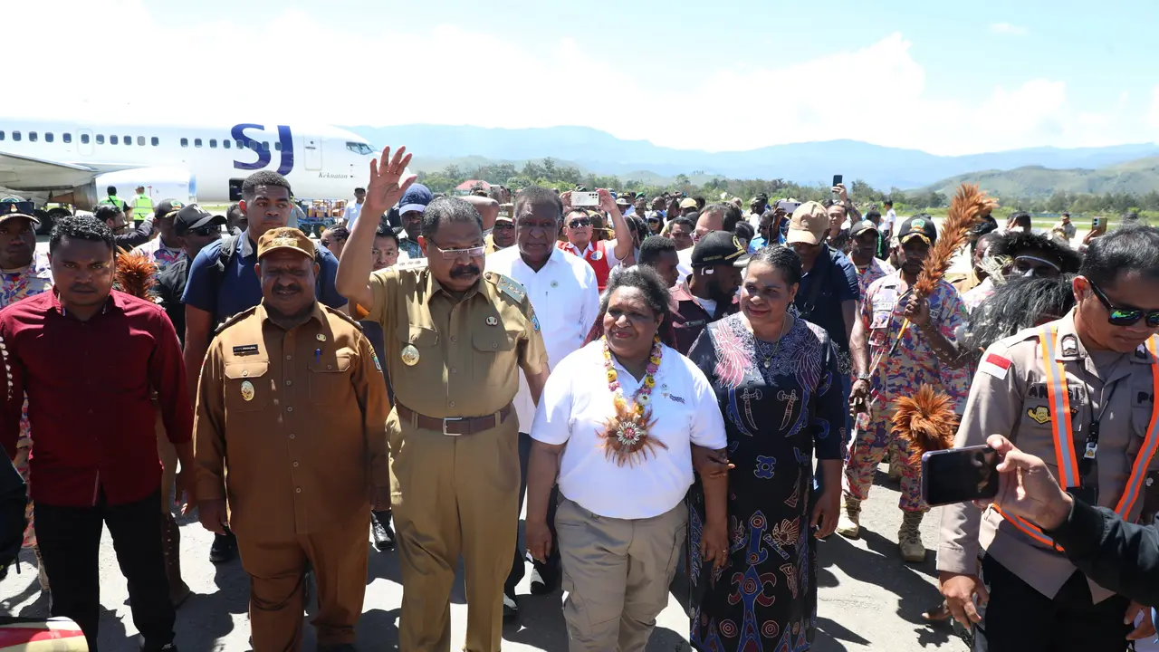 Wakil Menteri Dalam Negeri (Wamendagri) Ribka Haluk mengawal langsung penerbangan perdana maskapai Sriwijaya Air ke Bandara Wamena, Kabupaten Jayawijaya, Papua Pegunungan, Selasa (29/7/2025).